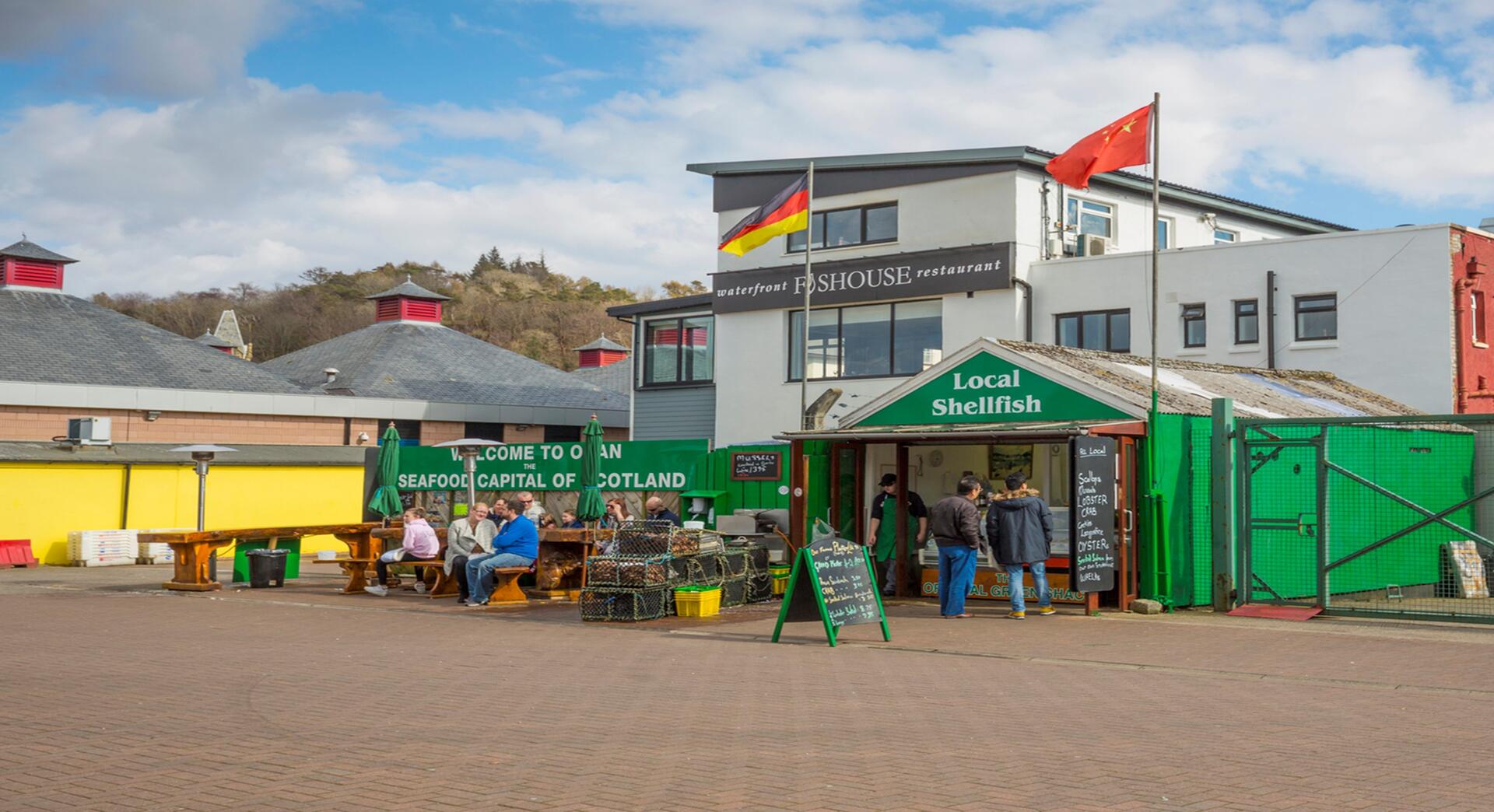 Famous Oban seafood hut serving fresh shellfish straight from the pier — a true local favourite by the harbour.